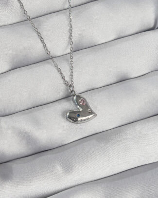 316L Çelik Zincir Gümüş Renk Renkli Zirkon Taşlı Kalp Kolye