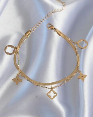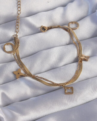 316L Çelik Gold Renk Çift Zincir Yonca Tasarım Bileklik