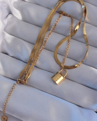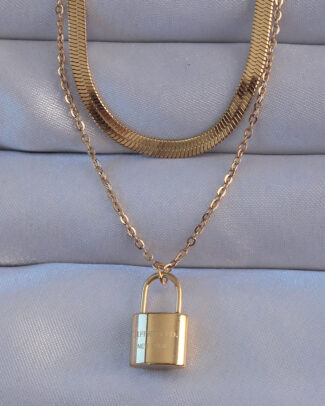 316L Çelik Gold Renk Çift Zincir Kilit Model Kolye