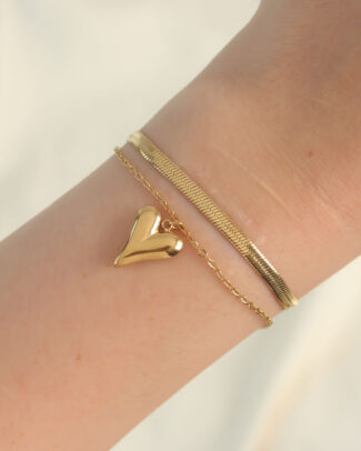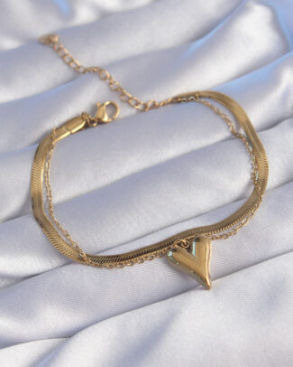 316L Çelik Gold Renk İtalyan Zincirli Kalp Model Bileklik