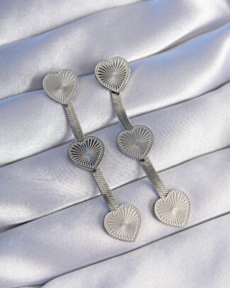 316L Çelik Gümüş Renk Uzun İtalyan Zincir Detaylı Kalp Küpe