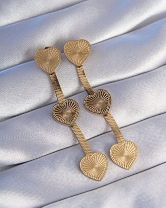 316L Çelik Gold Renk Uzun İtalyan Zincir Detaylı Kalp Küpe