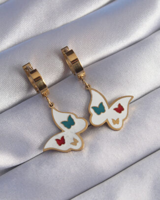 316L Çelik Gold Renk Renkli Mineli Kelebek Küpe
