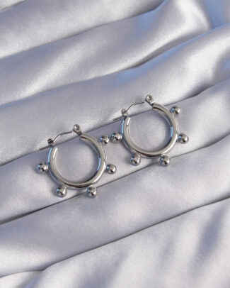 316L Çelik Gümüş Renk Topçuk Tasarımlı Oval Küpe