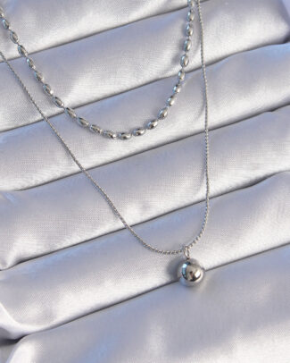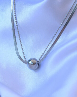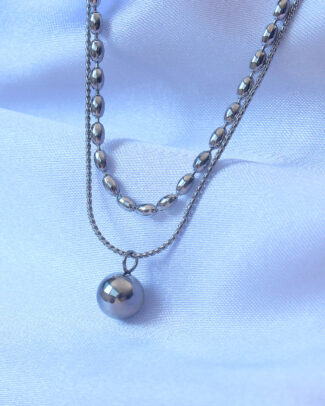 316L Çelik Çift Zincirli Gümüş Renk Topçuk Model Kolye