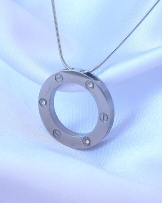 316L Çelik Gümüş Renk Zirkon Taşlı Model Kolye