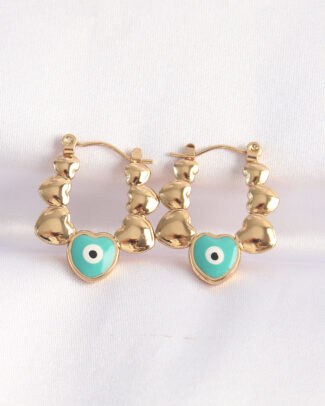 316L Çelik Gold Renk Mavi Nazarlı Kalpli Model Küpe