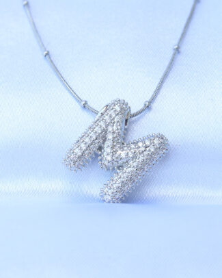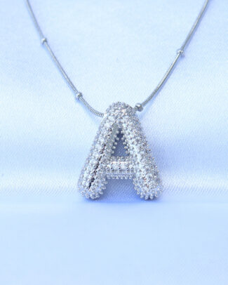 316L Çelik Zincirli Zirkon Taşlı A Harfli Gümüş Renk Bubble Kolye