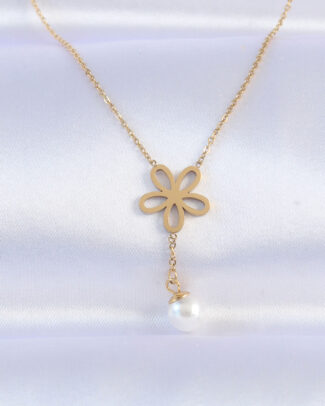 316L Çelik Zincir Gold Renk İnci Detay Çiçek Kolye
