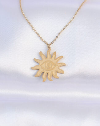 316L Çelik Zincir Gold Renk Göz Güneşi Tasarımlı Kolye