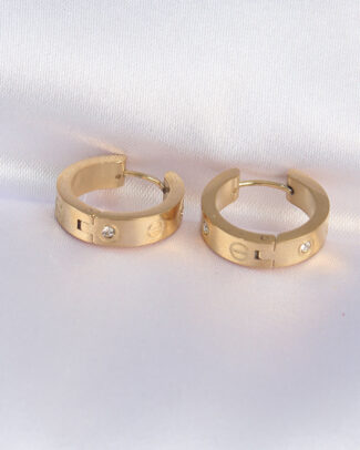 316L Çelik Gold Renk Zirkon Taşlı Model Halka Küpe