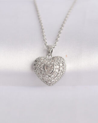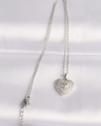 316L Çelik Zincir Gümüş Renk Zirkon Taşlı Kalp Kolye