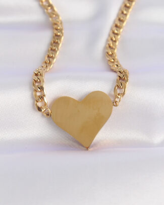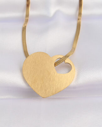 316L Çelik Zincir Altın Renk Düz Plaka Kalp Kolye