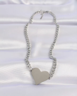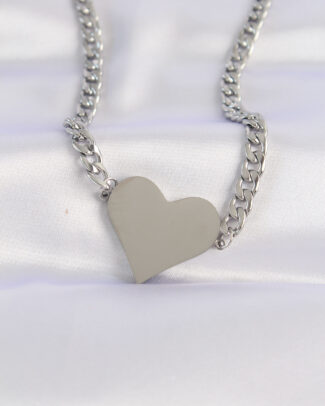 316L Çelik Zincir Gümüş Renk Düz Plaka Kalp Kolye