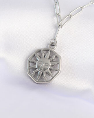 316L Çelik Zincir Gümüş Renk Güneş Kolye