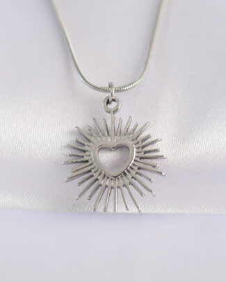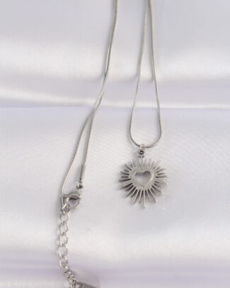 316L Çelik Zincir Gümüş Renk Kalp Güneşi Tasarımlı Kolye