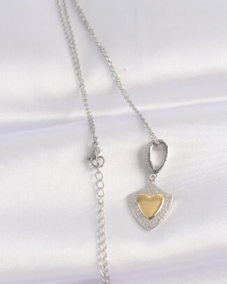316L Çelik Zincir Gümüş Renk Zirkon Taşlı Tasarım Altın Renk Kalp Kolye