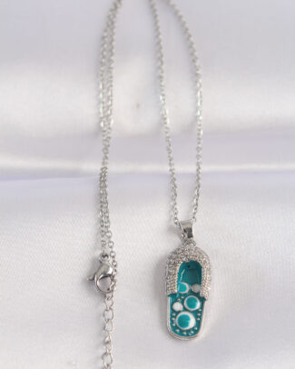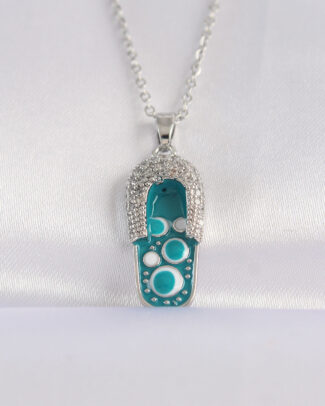 316L Çelik Zincir Zirkon Taşlı Gümüş Renk Nazarlı Terlik Tasarımlı Kolye