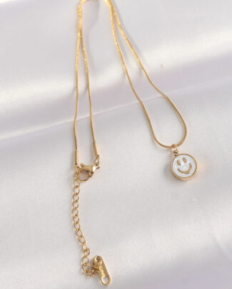 316L Çelik Zincir Altın Renk Mermer Desenli Minimal Smile Kolye
