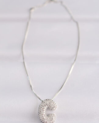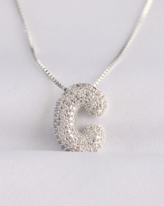 316L Çelik Zincirli Zirkon Taşlı C Harfli Silver Renk Bubble Kolye