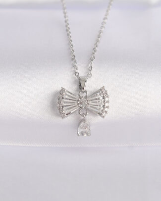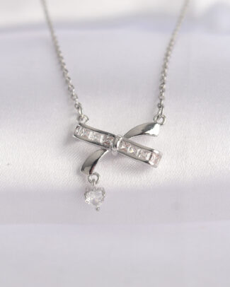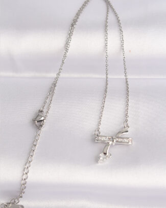 316L Çelik Zincir Gümüş Renk Zirkon Taşlı Kalp Detay Fiyonk Kolye