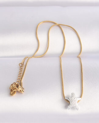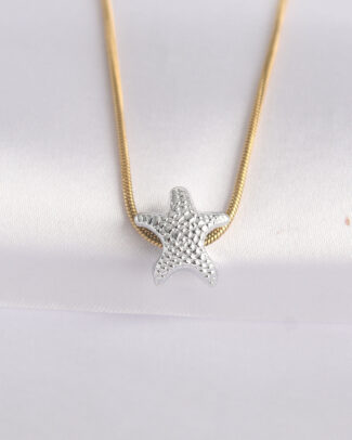 316L Çelik Zincir Altın Renk Zincirli Gümüş Renk Deniz Yıldızı Tasarımlı Kolye