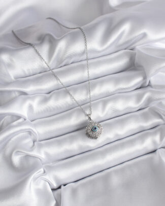 316L Çelik Gümüş Renk Mavi Taşlı Model Kadın Kolye
