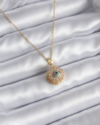 316L Çelik Gold Renk Zirkon Taşlı Göz Model Kadın Kolye