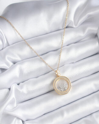 316L Çelik Gümüş Renk Zirkon Taşlı Rüya Kapanı Model İşeme Detay Kadın Kolye