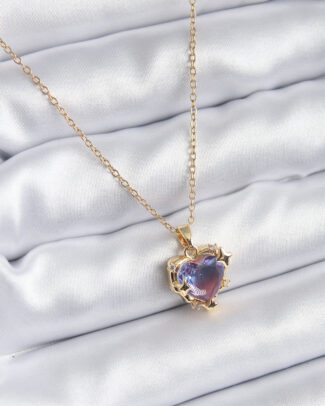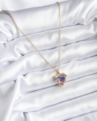 316L Çelik Zincir Gold Renk Mor Renk Zirkon Taşlı Kalp Model Kadın Kolye
