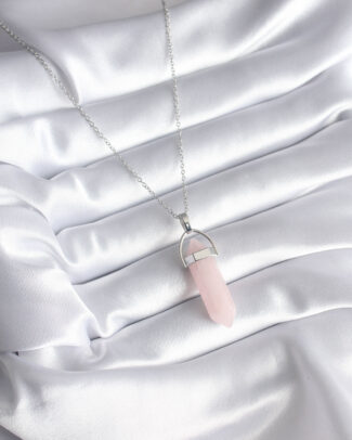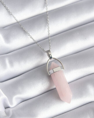 316L Çelik Gümüş Renk Pembe Taşlı Kadın Kolye
