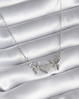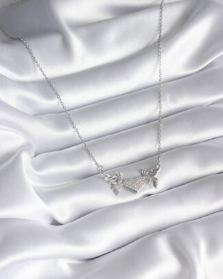 316L Çelik Gümüş Renk Zirkon Taşlı Kanat Kalp Model Kadın Kolye