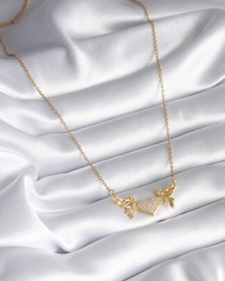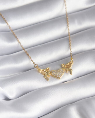 316L Çelik Gold Renk Zirkon Taşlı Kanatlı Kalp Model Kadın Kolye