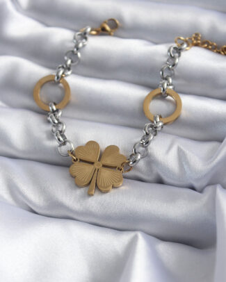 316L Çelik Mix Renk Zincir Model Yonca Figür Kadın Bileklik