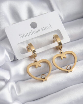 316L Çelik Gold Renk Kalp Model Zirkon Taş Detay Kadın Küpe