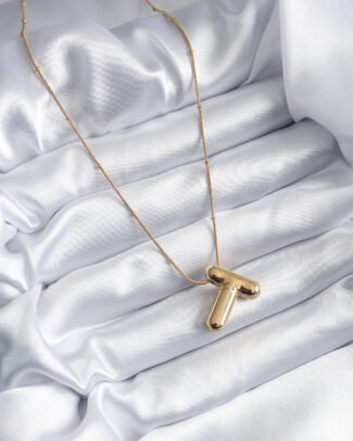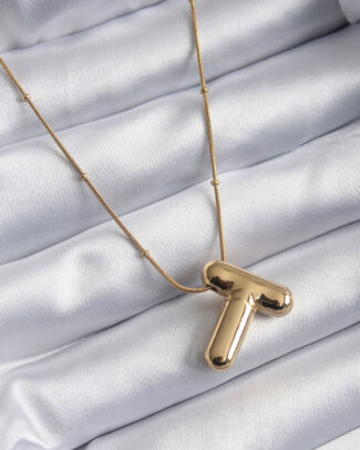 316L Çelik Gold Renk Bubble “T” Harf Model Kadın Kolye
