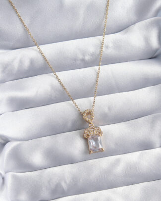 316L Çelik Zincir Gold Renk Zirkon Taşlı Taç Model Kadın Kolye