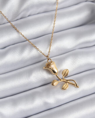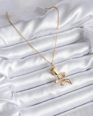 316L Çelik Gold Renk Gül Model Kadın Kolye