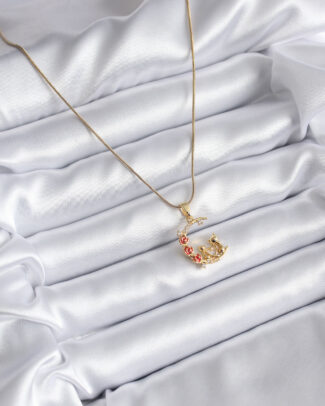 316L Çelik Gold Renk Hilal Kedi Model Zirkon Taşlı Detay Kadın Kolye