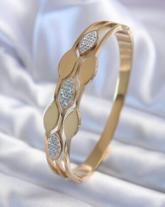 316L Çelik Gold Renk Arpa Model Zirkon Taş Detay Kadın Kelepçe Bileklik