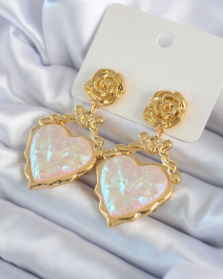 Gold Renk Gül Sallantı Kalp Model Pirinç VİP Kadın Küpe