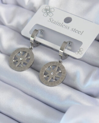 316L Çelik Gümüş Renk Kutup Yıldızı Model Zirkon Taş İşleme Detay Kadın Küpe