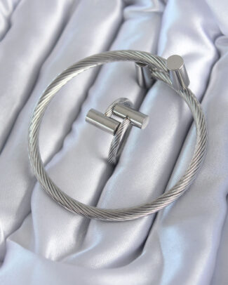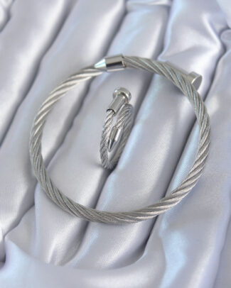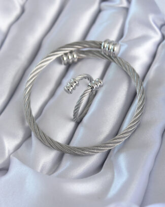 316L Çelik Gümüş Renk Sarmal Model Erkek Bileklik Yüzük Kombini