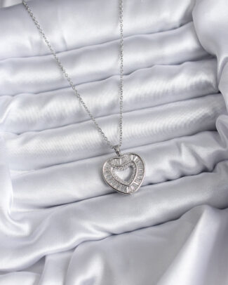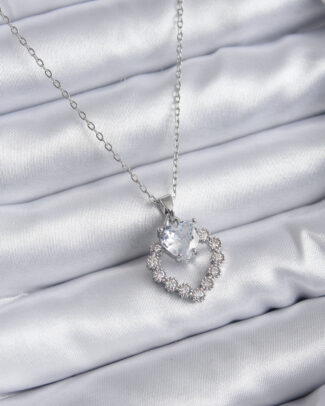 316L Çelik Zincir Gümüş Renk Zirkon Taşlı Kalp Model Kadın Kolye