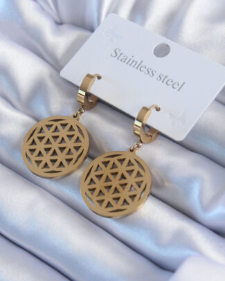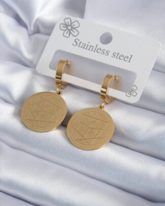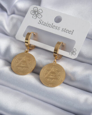 316L Çelik Gold Renk Pentagram İşleme Model Kadın Küpe