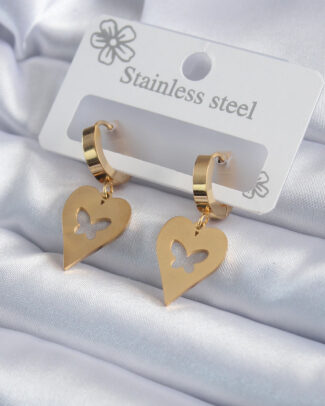 316L Çelik Gold Renk Kalp Model Kelebek İşleme Kadın Küpe
