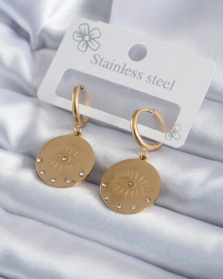 316L Çelik Gold Renk Zirkon Taşlı Göz İşleme Model Kadın Küpe
