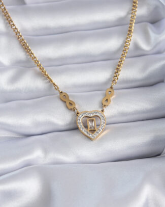 316L Çelik Gold Renk Zirkon Taşlı Kalp Model Sonsuzluk Detay Kadın Kolye