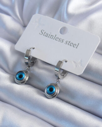 316L Çelik Gümüş Renk Nazar Boncuk Model Kadın Küpe