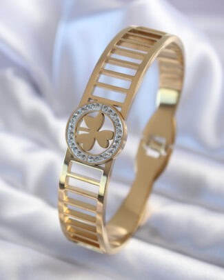 316L Çelik Gold Renk Zirkon Taşlı Yonca Model Kadın Kelepçe
